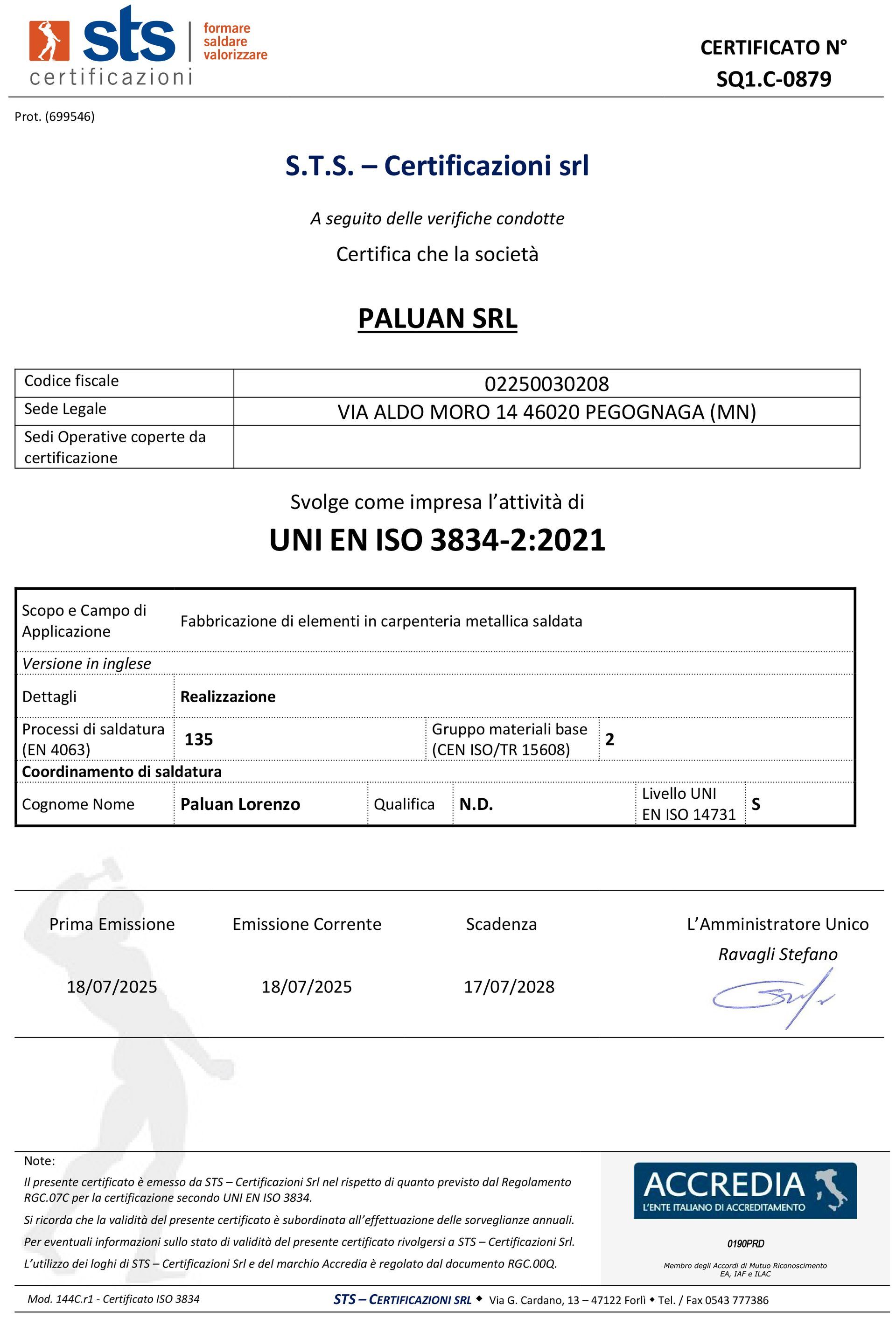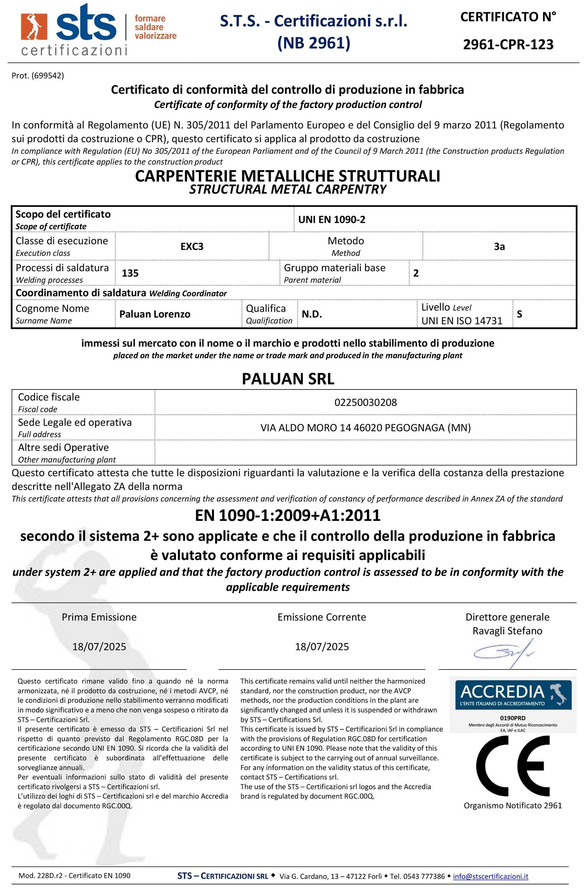 Paluan Srl, ein Industrie 4.0-Unternehmen, produziert seit über 44 Jahren Metallarbeiten aus Eisen, Stahl, Aluminium und anderen Legierungen und verwendet dabei sorgfältig geprüfte Qualitätsmaterialien.