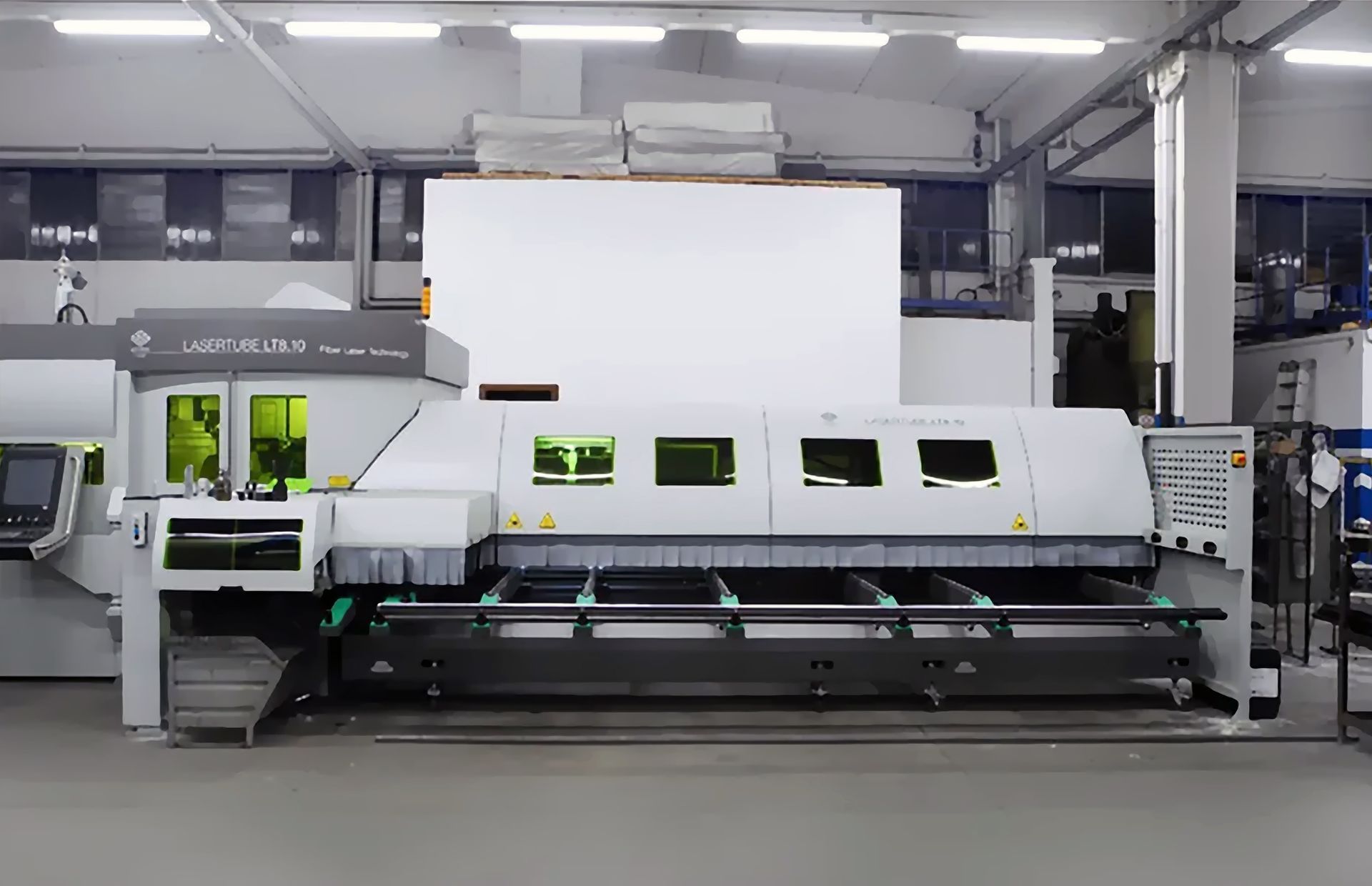 Taglio laser tubo automatico Adige LT 712D per verghe da mm 4500 a mm 6500, lavorazioni tubo da 12 a 152,4 mm di diametro. LT7 azzera il tempo di fermo macchina perché è in grado di auto configurarsi per la produzione del lotto successivo.